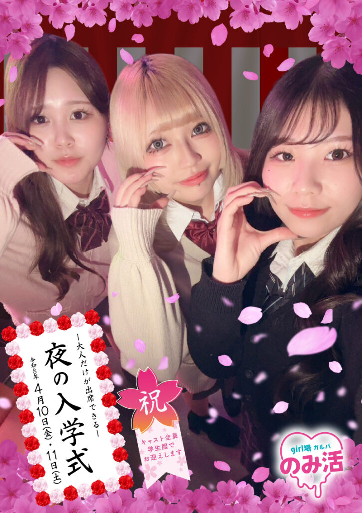 のみ活 -夜の入学式- 2026-03-01 最終更新日時 : 2026-03-01 user のみ活から4月イベントのお知らせです!📣 ☆期間☆4月10日(金)4月11日(土)になります❕ ♥期間中はのみ活ガールが制服でお迎えします♥ 入学された方にお祝いのプレゼントあります🎁✨ たくさんのご来店お待ちしております🎀♩